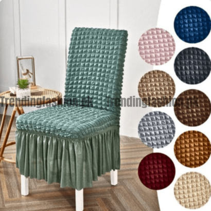 Wrap your dining chairs in elegance with our Bubble Stuff Frill Style chair covers – where style meets comfort effortlessly.